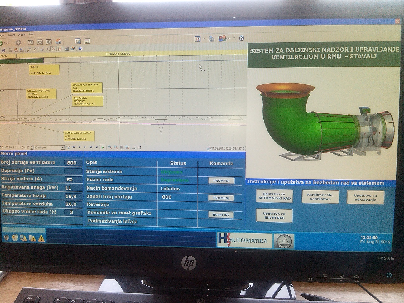 U sklopu rekonstrukcije ventilatorske stanice u rudniku RMU Štavalj. Firma Hertz Automatika d.o.o. je izvršila isporuku, montažu i puštanje u rad opreme za daljinsku kontrolu i upravljanje centralnim ventilacionim postrojenjem. Ventilatorsko postrojenje se satoji od centralnog aksijalnog ventilatora snage 75 kW, koji se pogoni frekventnim regulatorom. Upravljači deo postrojenja satoji se od PLC kontrolera koji je daljinski povezan sa dispičerskim centrom u kome je instalirana SCADA. SCADA sistem za nadzor i upravljanje povezan sa dislociranom ventilatorskom stanicom optičkom vezom.